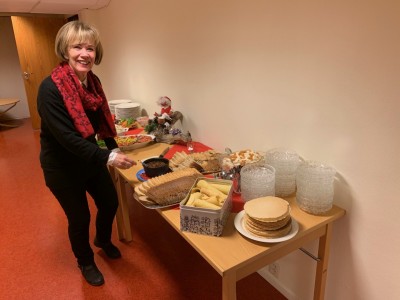 Matkomiteen hadde gjort ein fenomenal jobb: Koldtbord med spekemat, laks, eggerøre, og ikkje minst, kortreiste karbonader frå Velledalen. Til dessert var det moltekrem, kromkaker og Strandabakelse. Og sjølsagt kaffe. Det skulle ikkje vere nødvendig å gå svolten frå dette møtet. Sjå bilder!