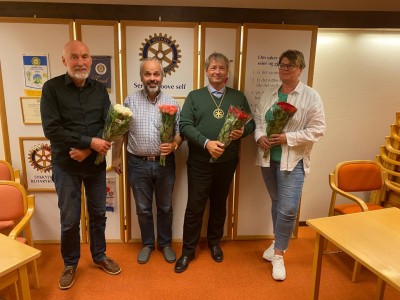 Fråtrer styreverv: Desse får blomster med takk for innsats: Frå venstre på bildet, Jan Fredriksen TRF, Knut Jarle Vik Medlemskap, Roger Kornberg Past president og Kristin Grebstad Sekretær.