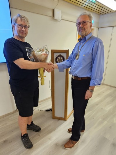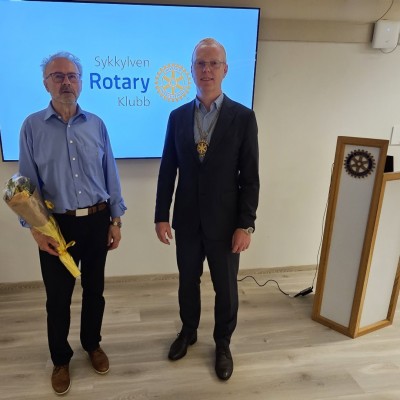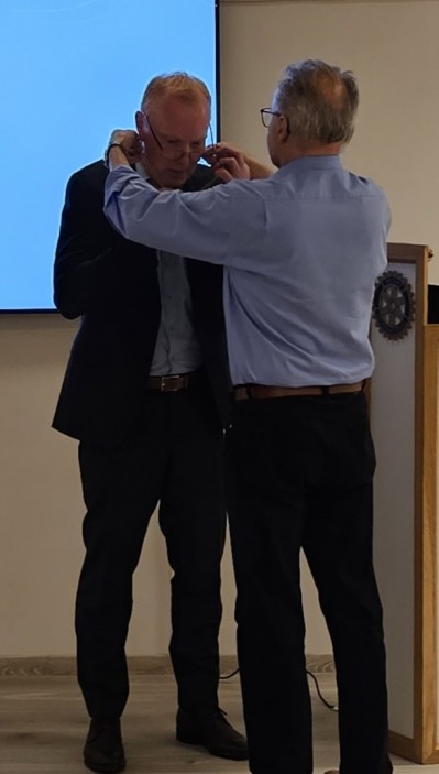 Knut Henning Aursnes fekk overlevert presidentkjedet og presidentnåla. Han takka for tilliten og presenterte sitt styre som no er utvida til ti personar. I tillegg hadde han ein fin tale til klubben. Talen var skriven av kunstig intelligens på bakgrunn av stikkord. Knut Henning gjekk og gjennom sine planer for det komande rotaryåret.