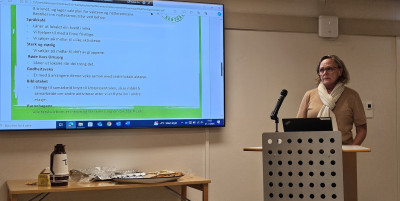 Leiar for Sykkylven Frivilligsentral, Tove Sperre, heldt foredrag om tilbod og innsats for drifting av sentralen.