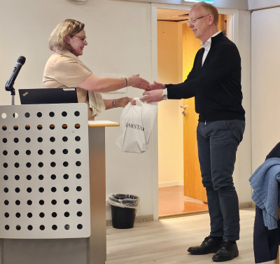 Så langt leiar for Frivillig-Sentralen, Tove Sperre frå Sykkylven kommune. Ho fekk både takk, gode ord og ei lita gåve frå vikarpresident Knut Henning, som deretter ønska oss alle vel heim.