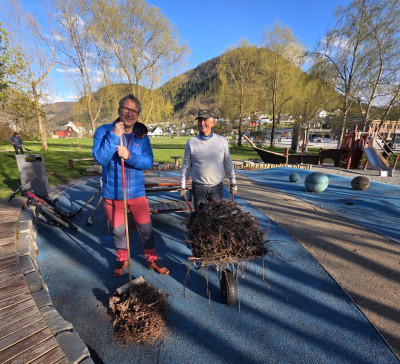 «Det er vårdag i skogen, det spretter og gror, og sangen du hører er fuglenes kor…» Ja, Torbjørn Egner kan få sagt det! Alle vi andre kan tralle det og sanse vårstemninga både på eigen grunn og, til dømes i Kyrkjeparken. Den årvisse Rotary-dugnaden har tretti års tradisjon, minst, og i løpet av eit par timar skifter området klednad frå vinter-ruske-kostyme til vakker vår-kolleksjon i området rundt leikeplassen og ved innkøyringane til kyrkja.