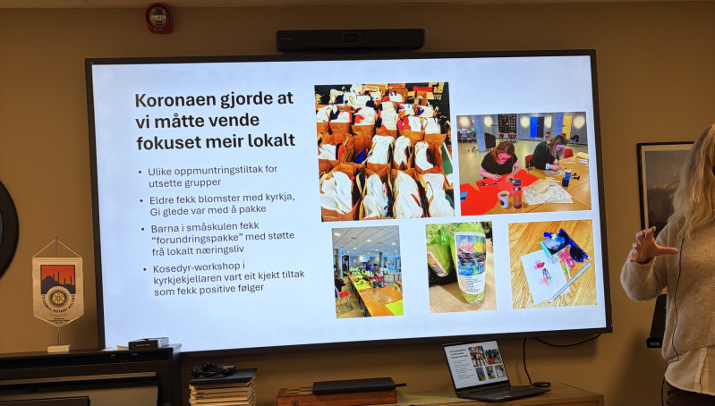 Dagleg leiar Therese Hovland orienterte om organisasjonen Gi Glede. Gi Glede er ein hjelpeorganisasjon som held til i kjellaren på Hjøregården i Aure sentrum.Dei har halde til i Hjørnegården sidan 2024.